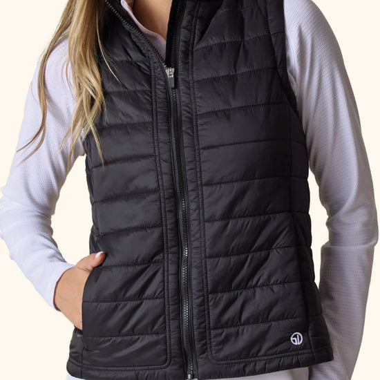The Cloud Vest is Straight Down's best-selling women’s vest, featuring a simple quilted design with zippered side pockets. This padded vest is made with lightweight polyester insulation, making it perfect for staying warm without bulk. Whether you're on the course or out and about, it’s an ideal layer for any activity.