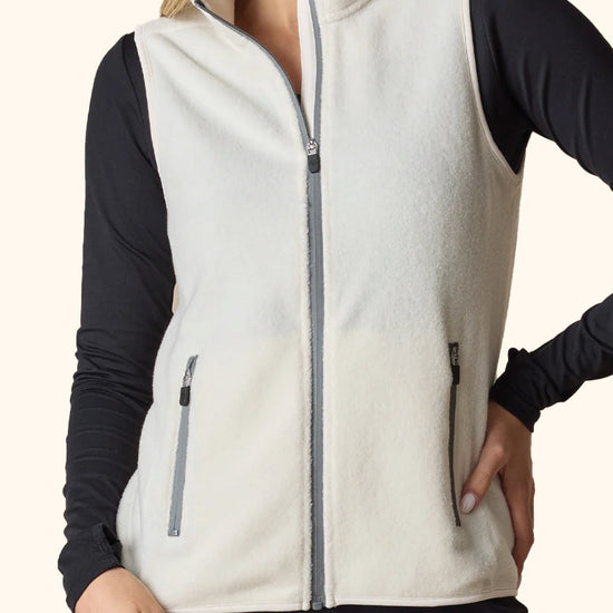 The Lucia Vest is a cozy fleece version of our popular Cerro style, designed for a stylish, modern look with its sleek waterproof zippers. It has a flattering, shapely fit and handy zippered hand pockets for warmth and convenience. It’s a solid choice for staying comfortable on the course when the weather calls for a bit of extra warmth.