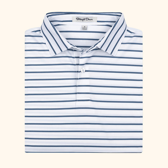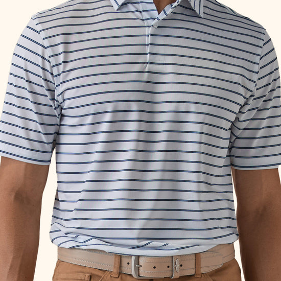 The Quintero Stripe Polo offers a retro-inspired look with its three-color wide stripe pattern and breathable pique knit fabric. Designed for performance, this lightweight polo gives you the freedom to move with ease, while its moisture-wicking and quick-drying properties keep you cool and dry throughout your round.